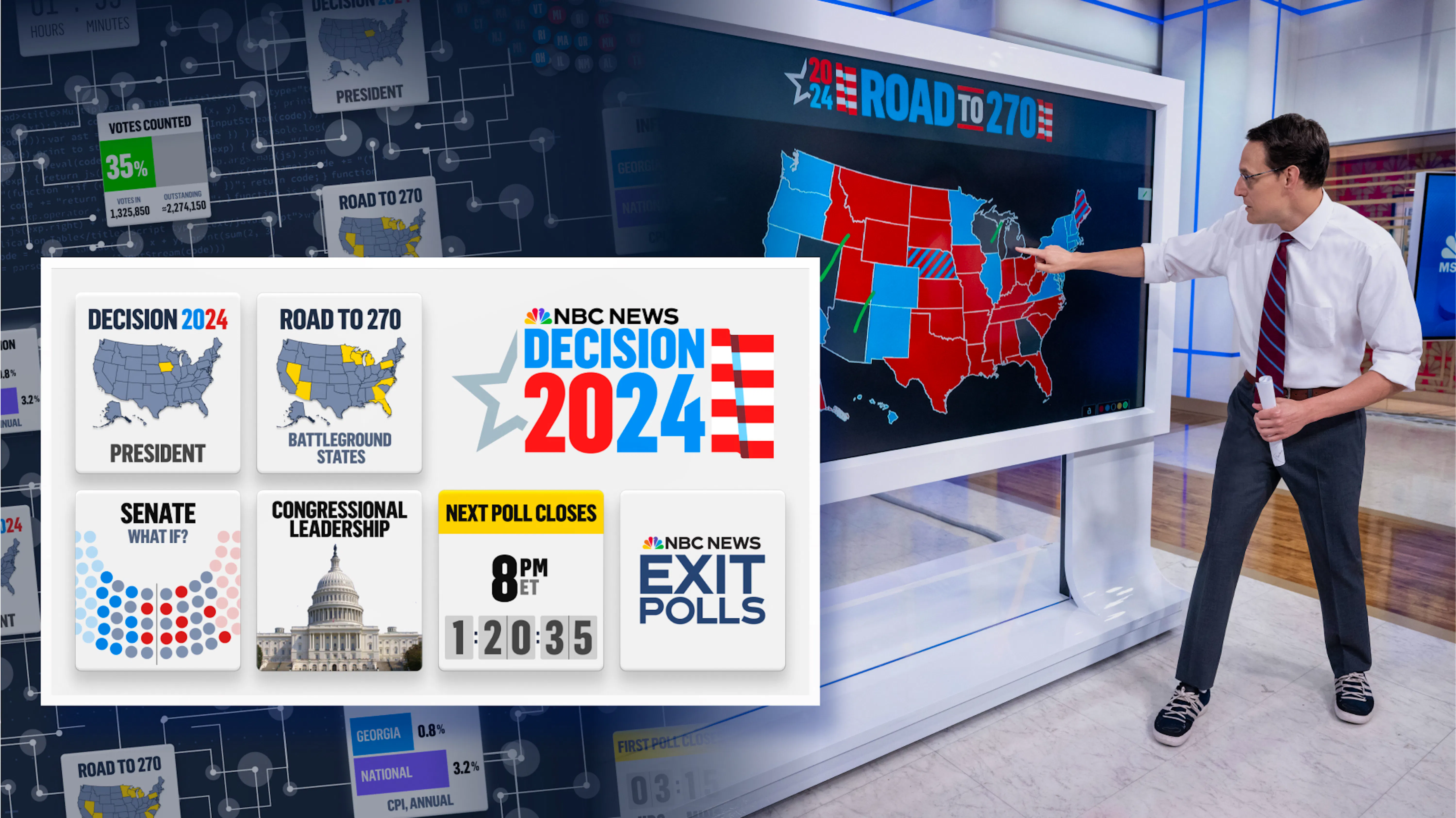 We built a scalable architecture that ensures customization across NBC’s top platforms in English and Spanish, including two networks (NBC and MSNBC), various TV shows (Today Show, Meet the Press, Telemundo, Morning Joe, The Rachel Maddow Show), NBC News Now’s YouTube channel and the “Kornacki Cam” YouTube stream.