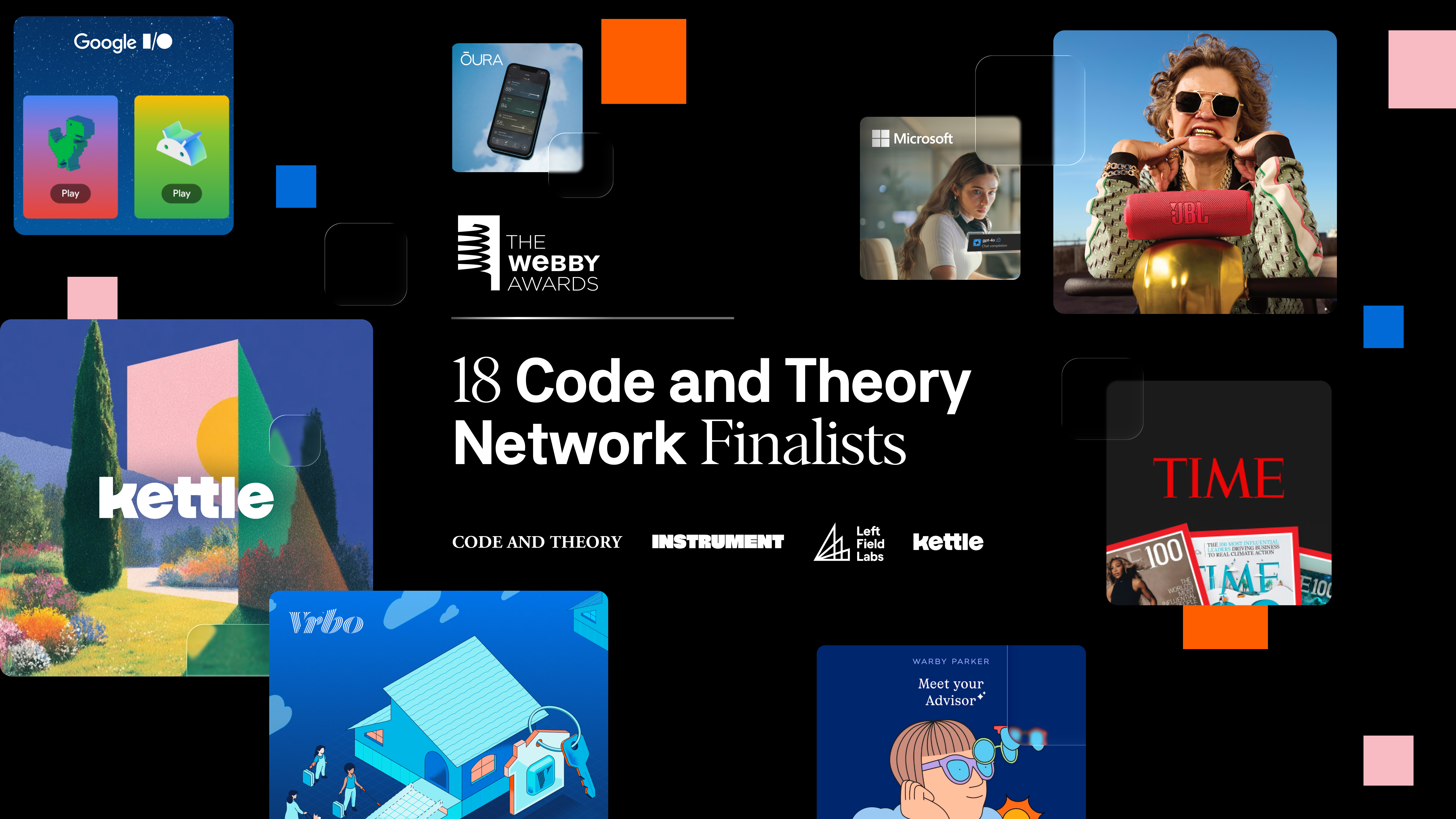The Code and Theory Network (incl. Kettle, Instrument and Left Field Labs) is shortlisted for 18 Webby Awards! Join us in voting daily for each of these incredible campaigns today through April 16th.