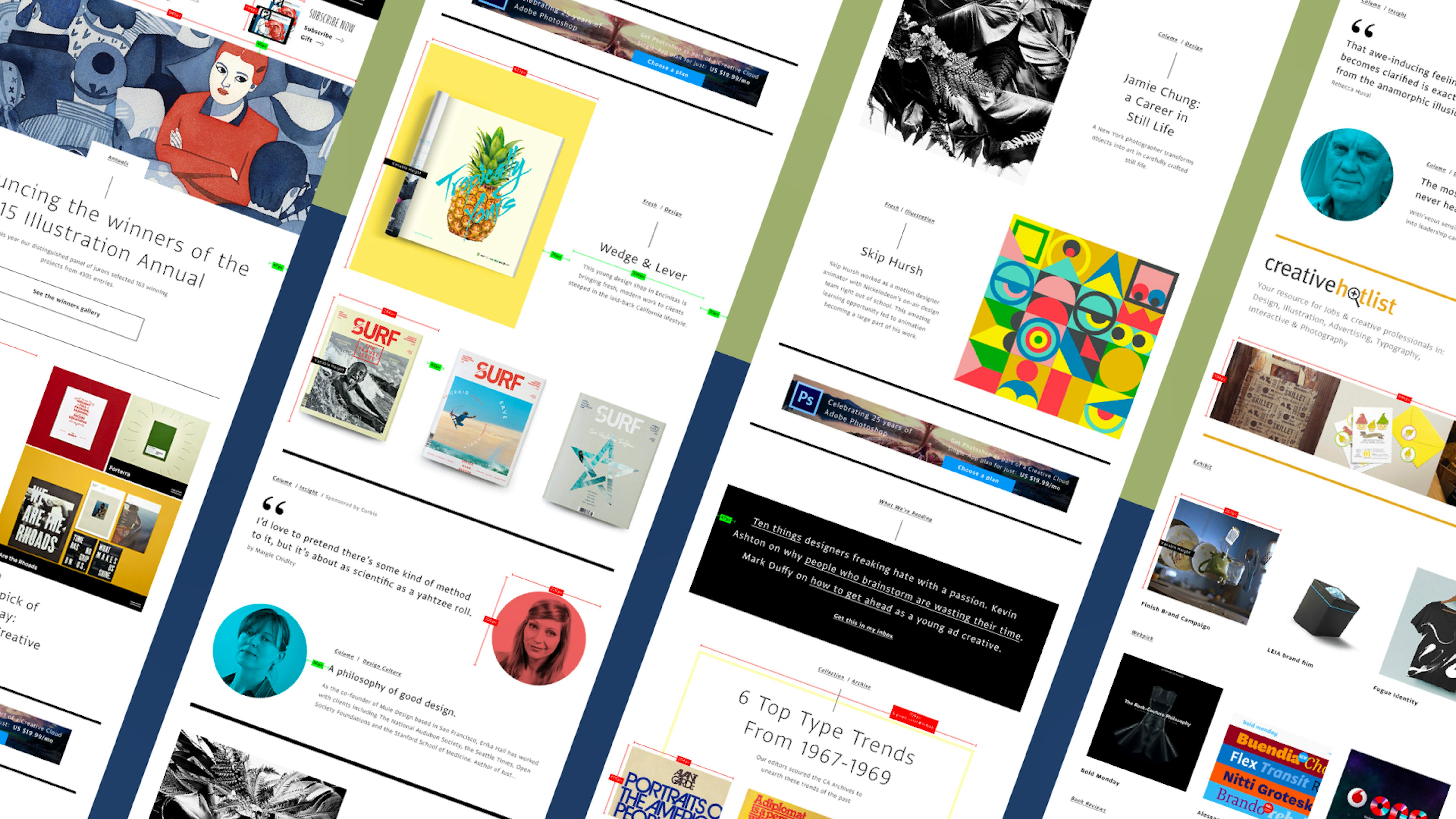Visitors landing on the new CommArts.com homepage find a refreshed information architecture. Designed to increase discoverability, the homepage now integrates content items that had previously been overlooked alongside major headlines. Once visitors identify an article of interest, the left-hand navigation offers similar content so they can dive deeper into those topics.