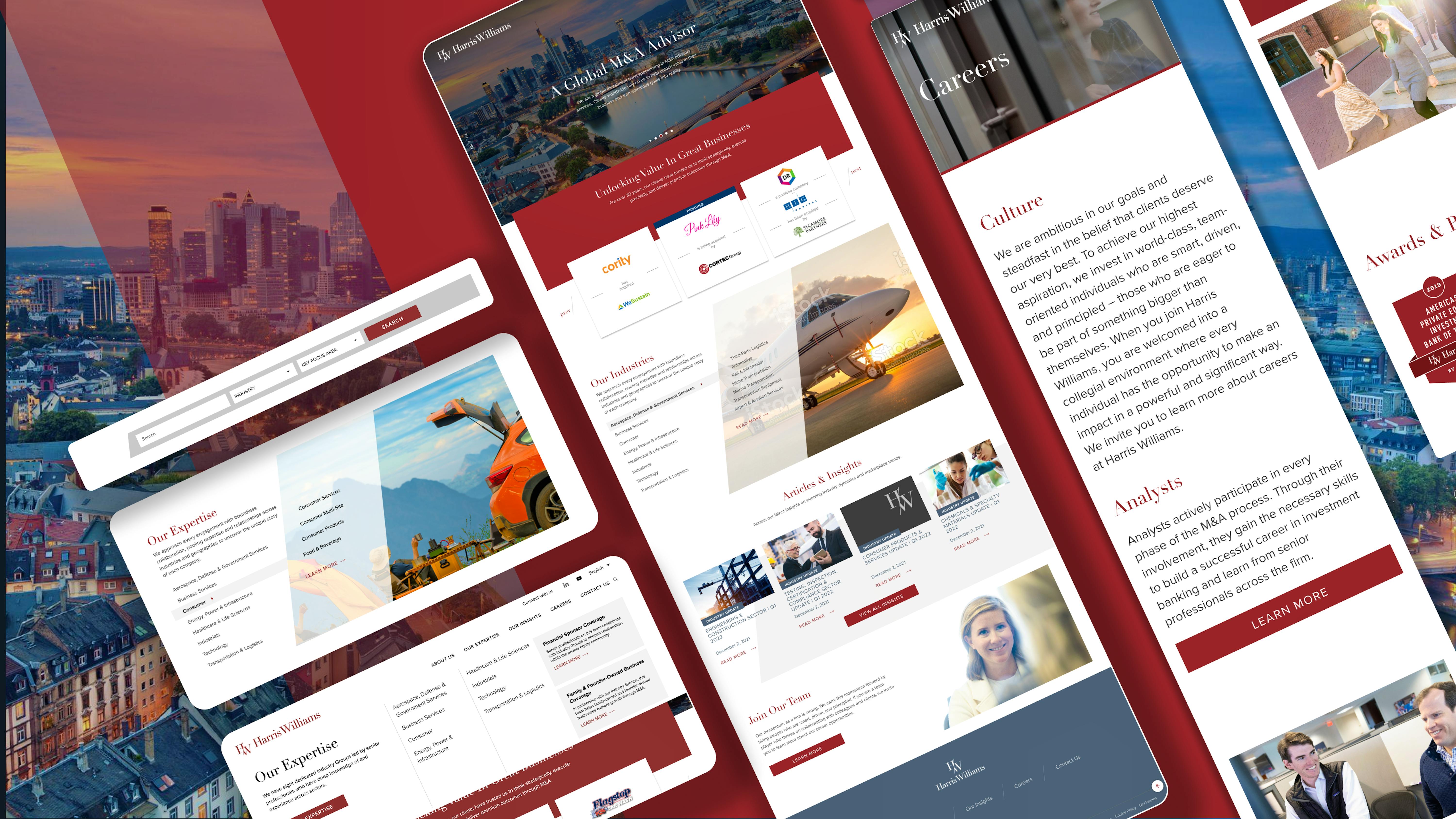 We started by gaining a better understanding of Harris Williams as an organization, and what truly sets it apart: a collaborative approach, deep industry expertise, and dynamic talent. These three attributes guided the design, messaging, and user experience of the new website.