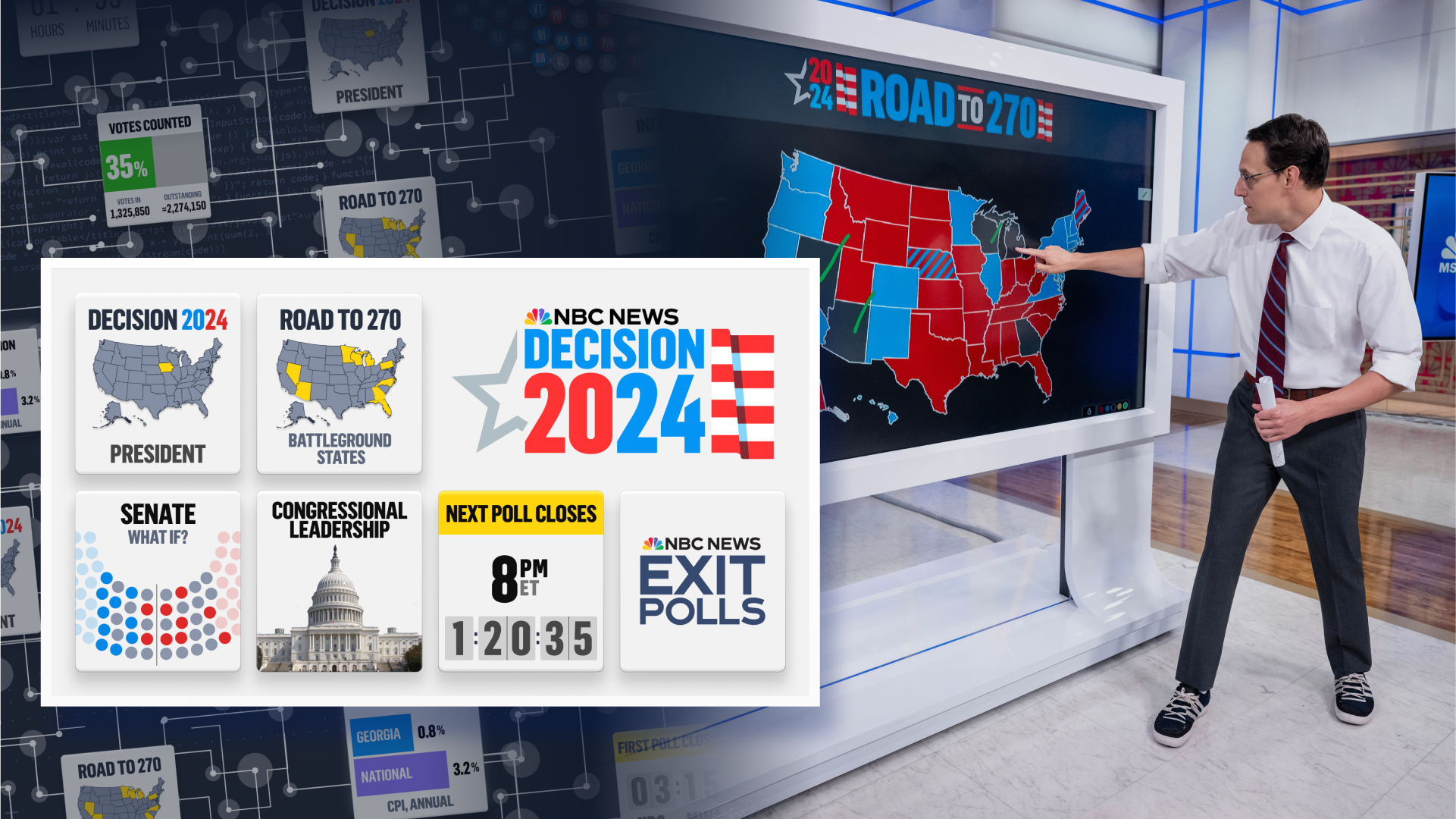 We built a scalable architecture that ensures customization across NBC’s top platforms in English and Spanish, including two networks (NBC and MSNBC), various TV shows (Today Show, Meet the Press, Telemundo, Morning Joe, The Rachel Maddow Show), NBC News Now’s YouTube channel and the “Kornacki Cam” YouTube stream.