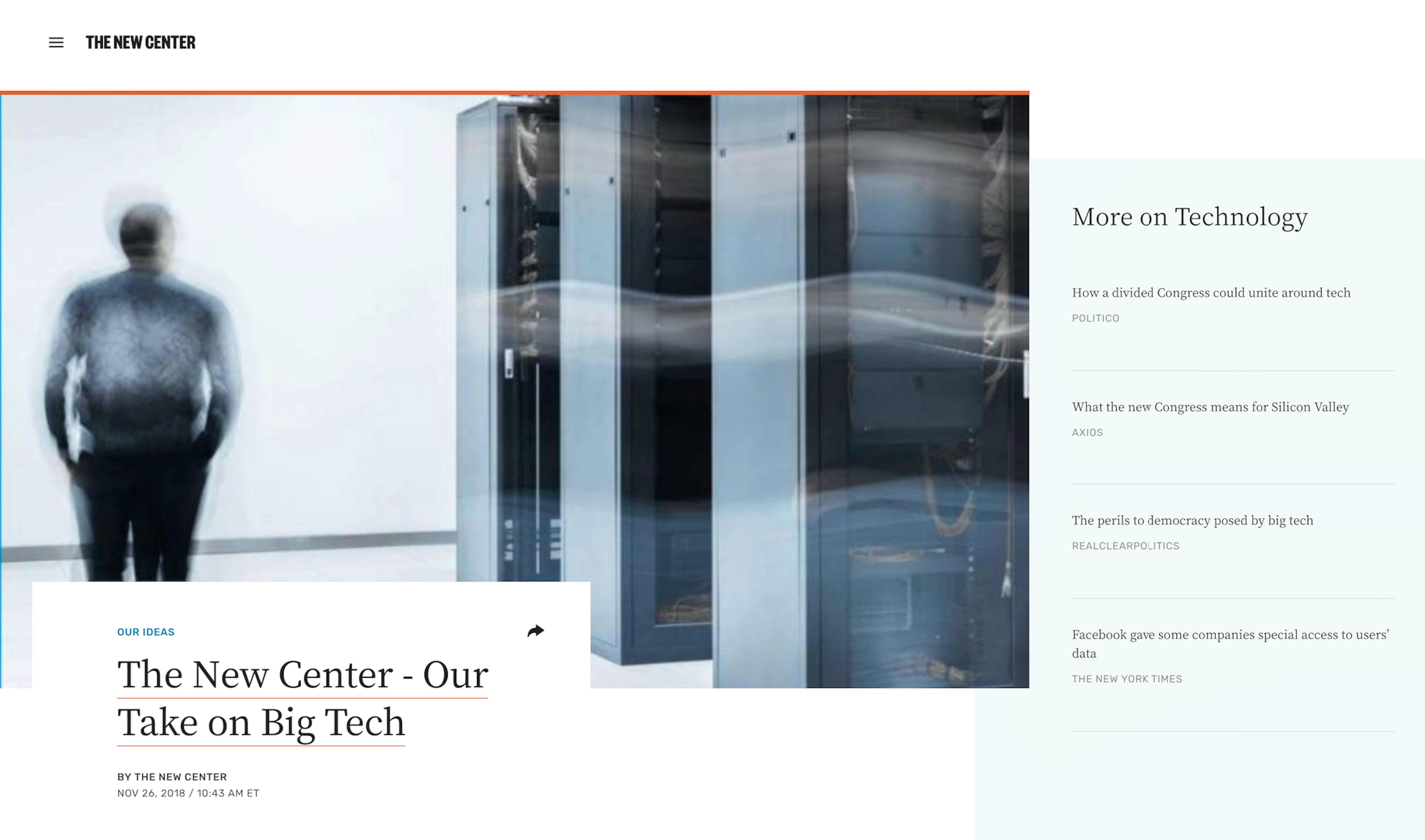 Shortly after launch, as well as the publication of its first policy memo, The New Center garnered coverage in multiple major publications including, The Washington Post, The Los Angeles Times, and The National Review.